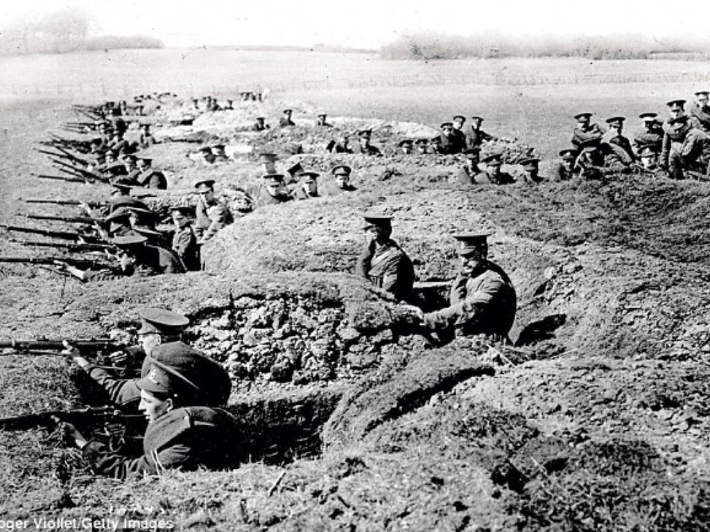Trenches full of British and German troops, fall of 1942. Notice that a lot of weapons and armour are World War I leftovers, as new armour and weapons weren't being mass produced yet.