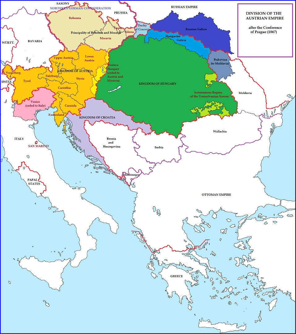 Division of former Austro-Hungarian empire in 1867 as per the Treaty of Prague.